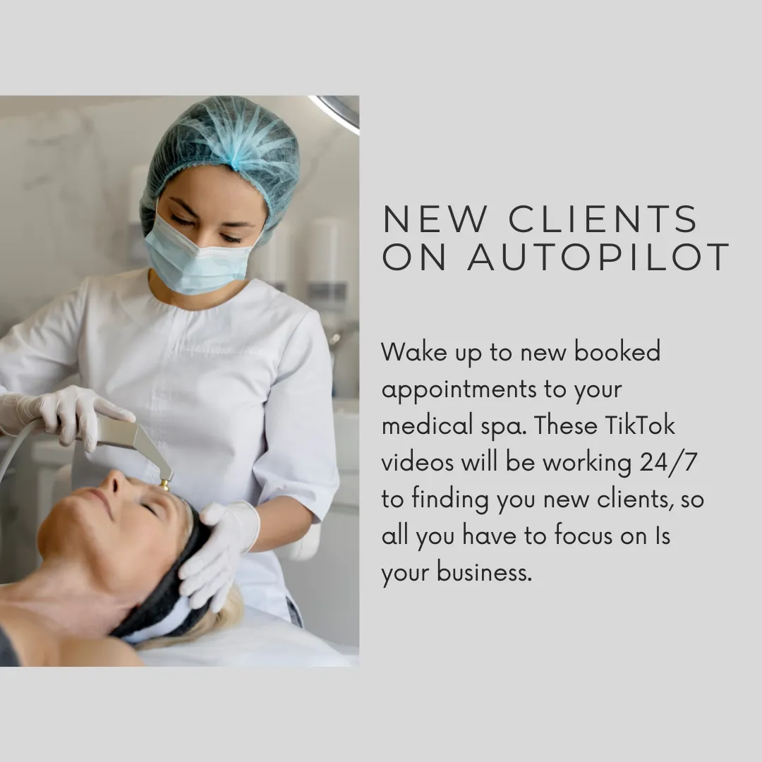 Wake up to new booked appointments to your med spa. These TikTok Videos and AI assistants will be working 24/7 to book you new clients, so you all have to do is focus on your business.